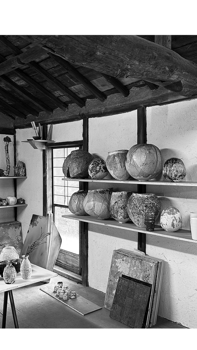ミノワタカハルの壺は、ろくろを使わず、手のひらの記憶だけで形づくられます。揺らぎを孕んだアシンメトリーなかたちは、均衡を絶妙に保ちながら、静かに緊張をはらんだ存在感を放ちます。