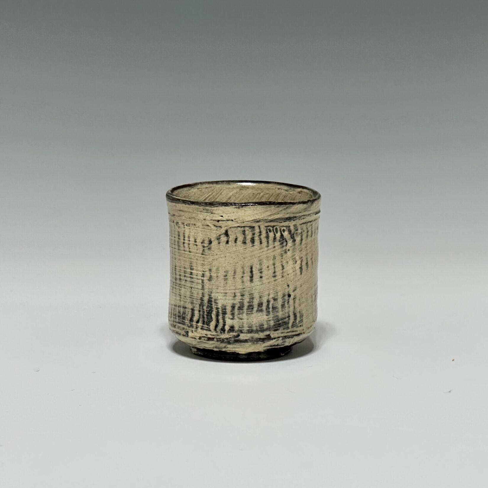 刷毛目のように施された三島の装飾が、器の肌に穏やかなリズムを刻む盃です。