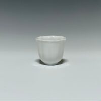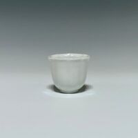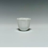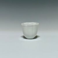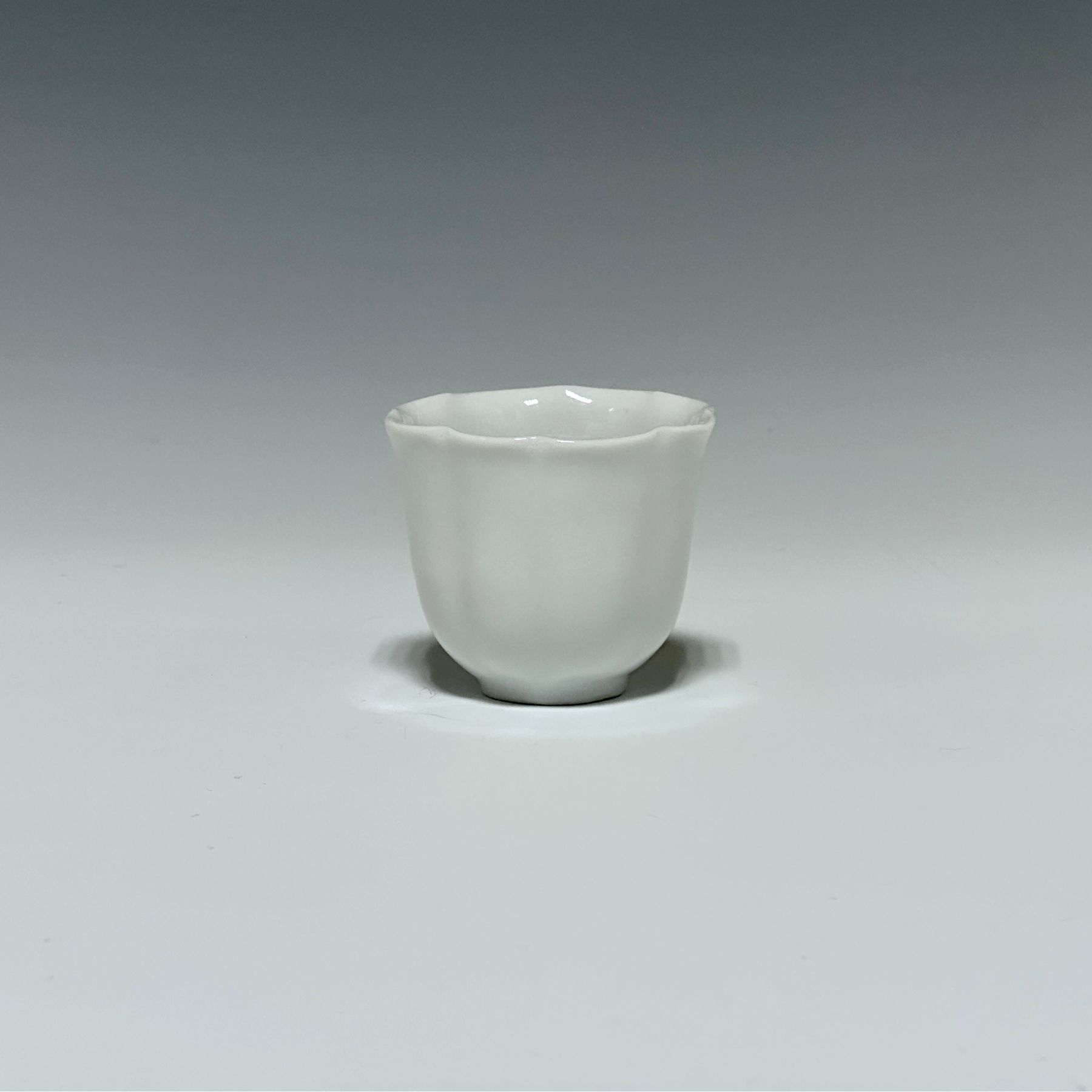 澄み切った白磁の肌に、輪花の柔らかな稜線が静かに浮かび上がる盃。