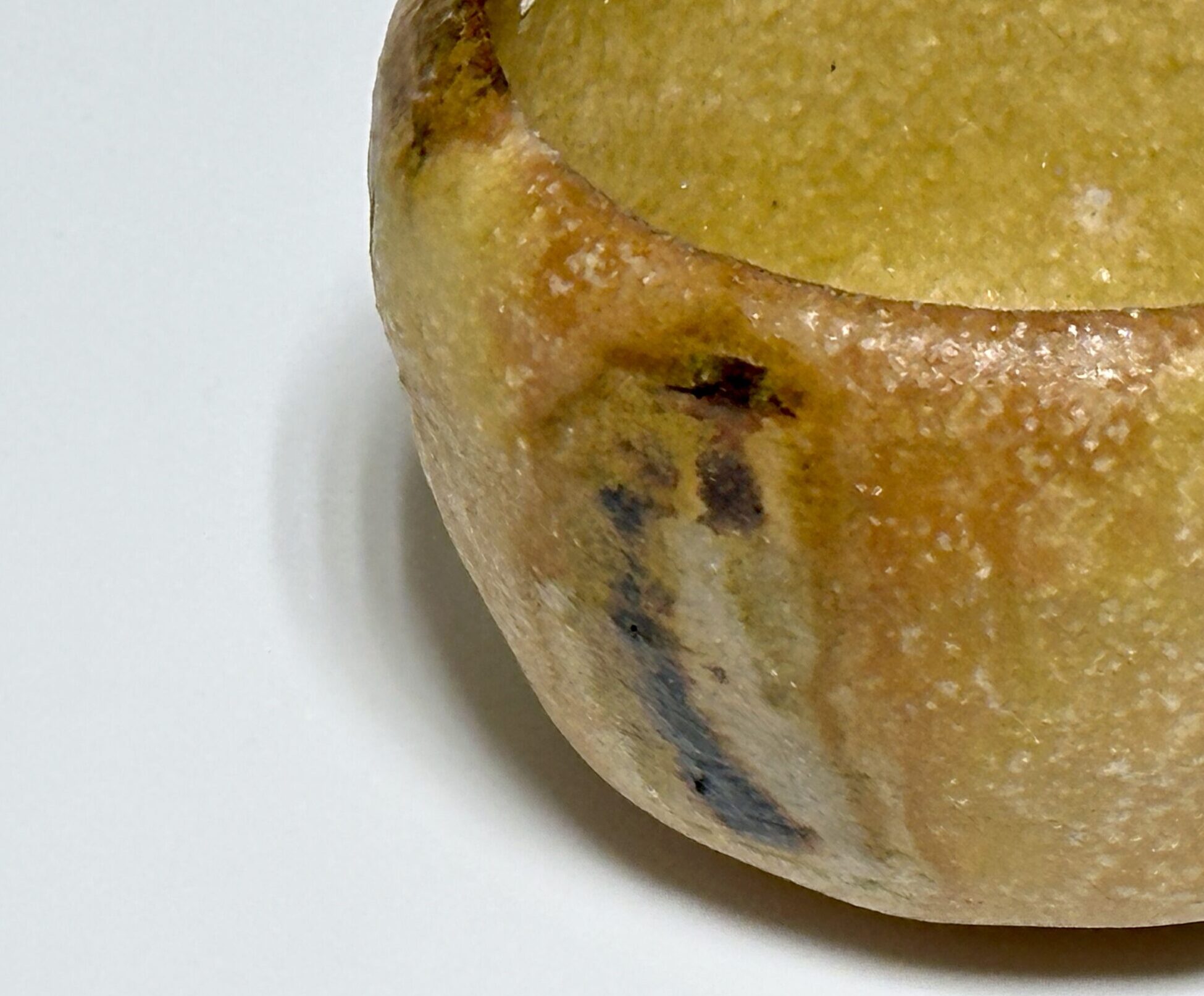 やわらかな黄瀬戸釉が、土味の起伏に寄り添うように流れた一盃。
